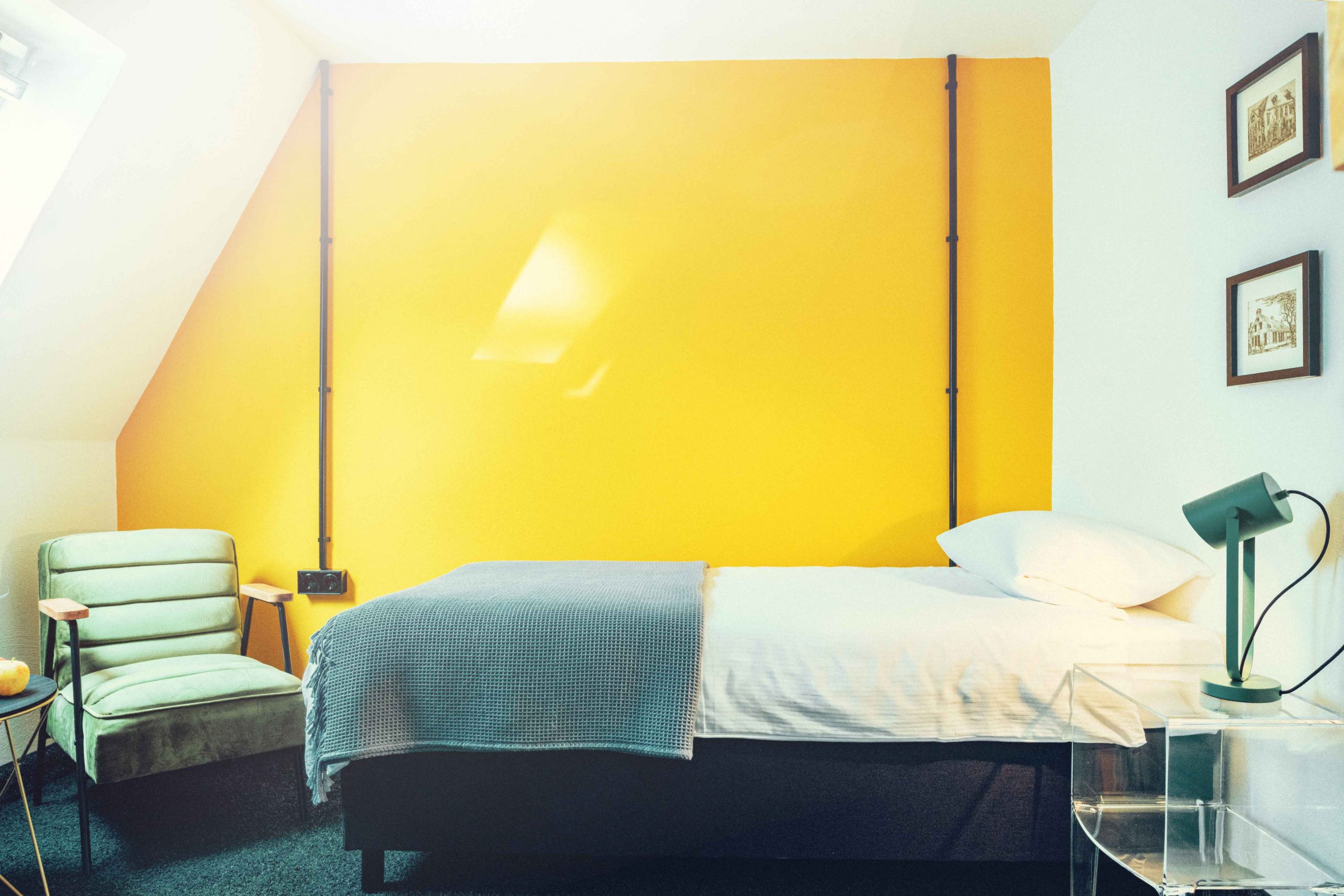Das kleine Hotelzimmer gibt es mit einem gemütlichen Einzelbett oder Doppelbett, einem Arbeitsplatz und einem Polstersessel zum Relaxen, sowie moderner Dusche & WC Ausstattung – ideal für Kurzreisen, Geschäftsaufenthalte oder spontane Kurztrips.